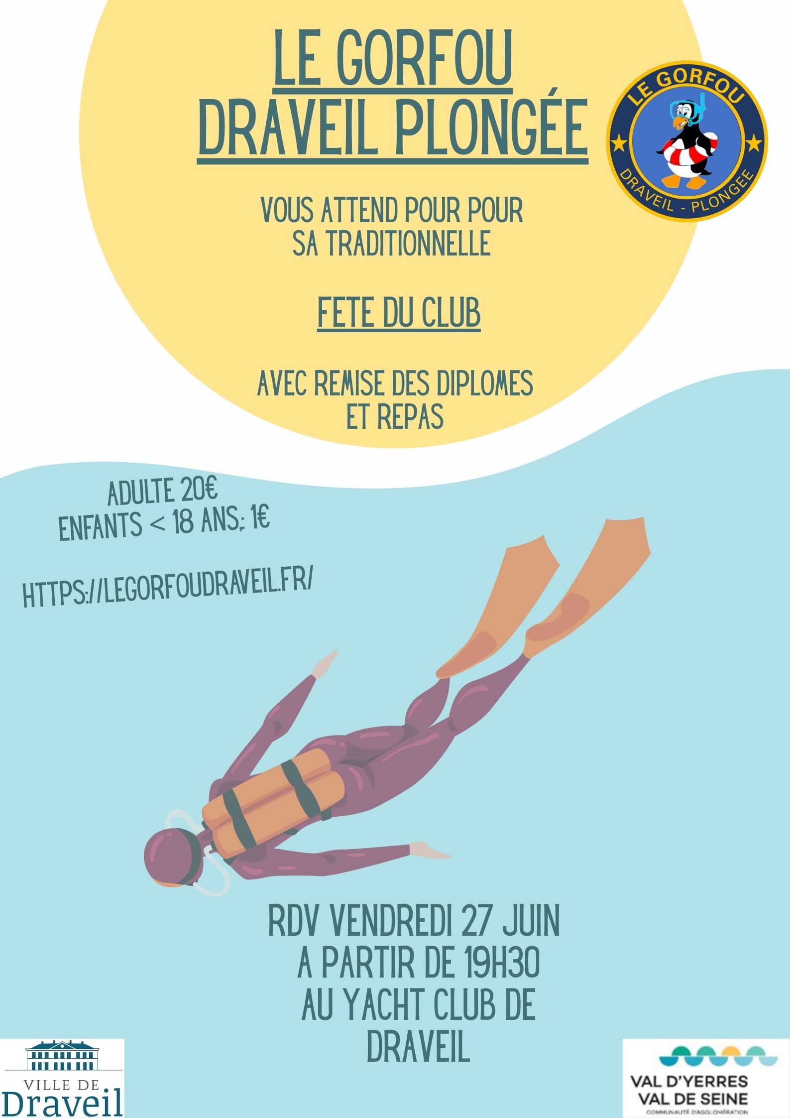 Remise des diplômes, soirée conviviale en famille dans le cadre paradisiaque du Yacht club de Draveil: apéritif ,entrées, repas (paëlla) , desserts, 20€/ pers, < 18 ans 1€