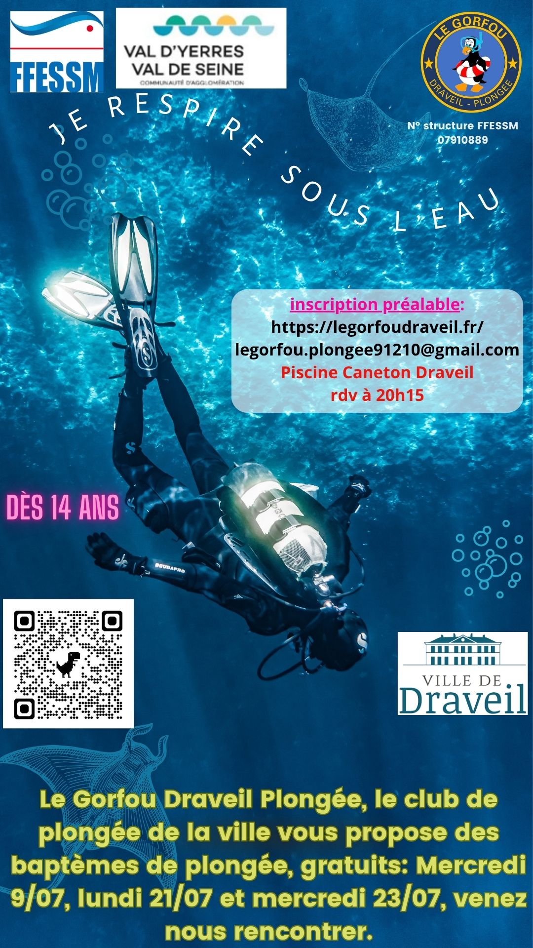rdv mercredi 5/11 à 20h30 au bord du bassin, pour 1 réunion de présentation de la formation Niveau 1, avec l’équipe des moniteurs, et il y aura une explication des différents calendriers, programme, fosse, exam, sortie , et du fonctionnement du site, venez nombreux.